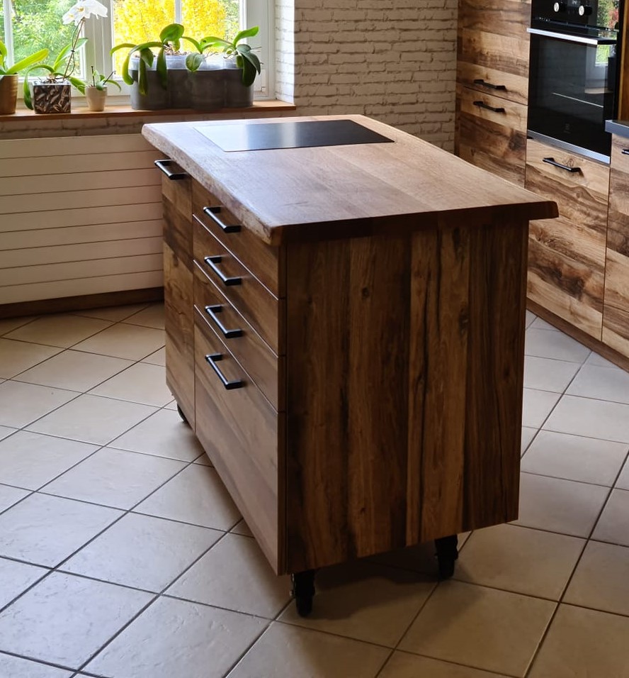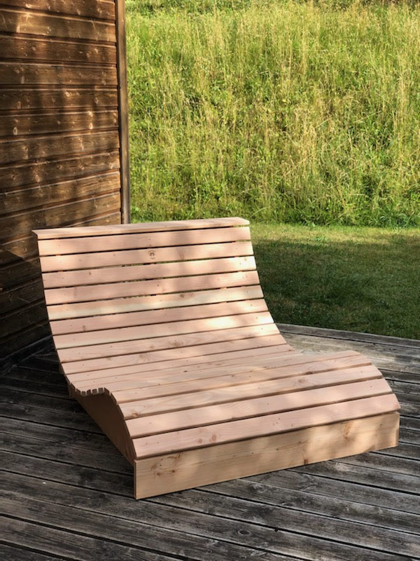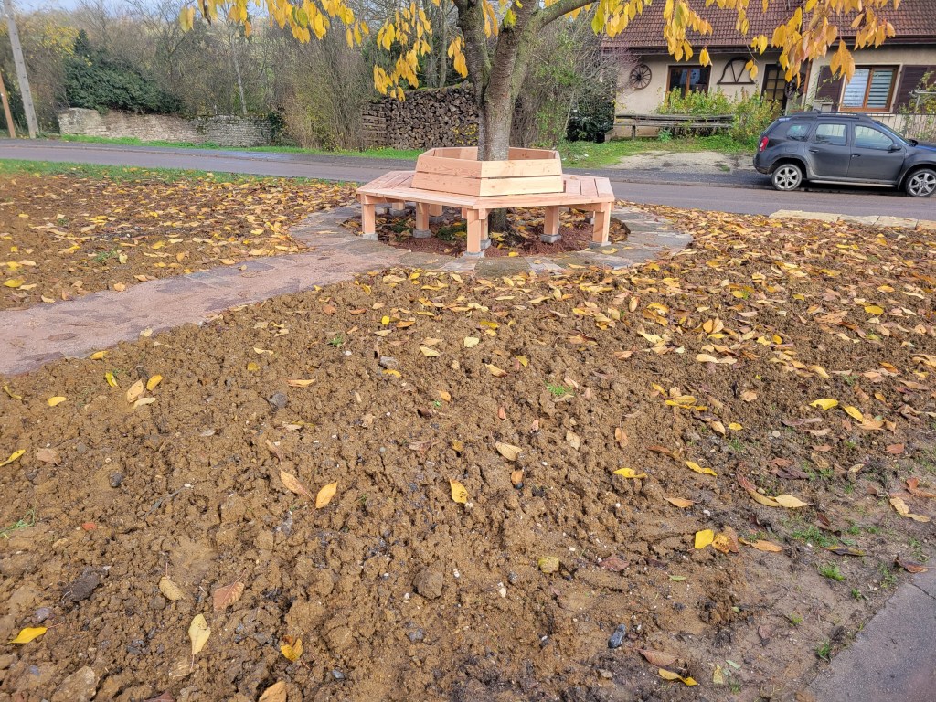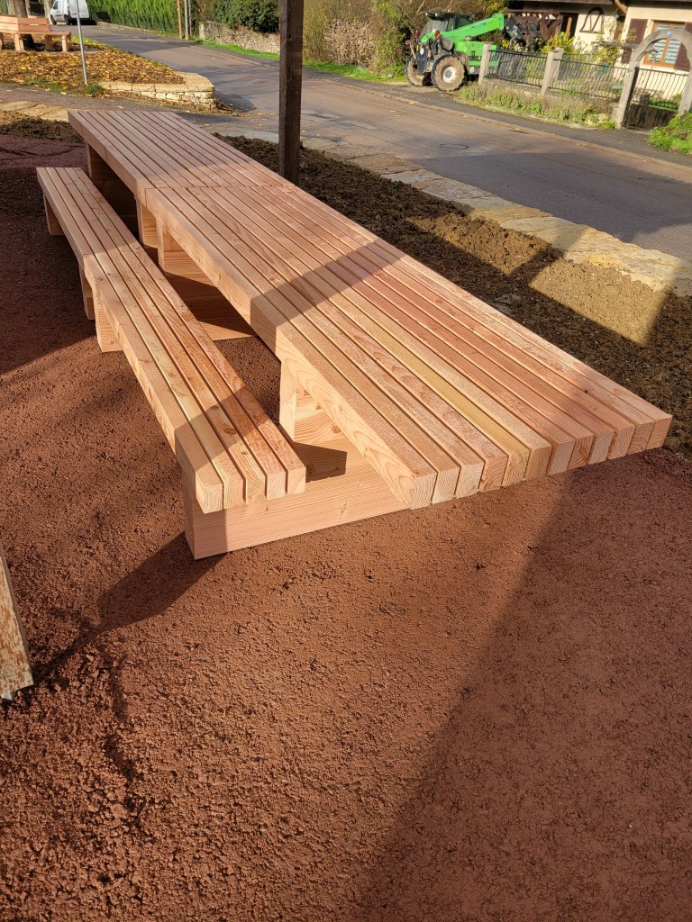 Mobiliers sur mesure Banc autour d’un arbre Table de pique nique Table basse en chêne avec pied métal Transat en douglas Console en bois massif Table basse ronde en chêne massif Table basse en chêne sur mesure Meuble vasque en chêne massif