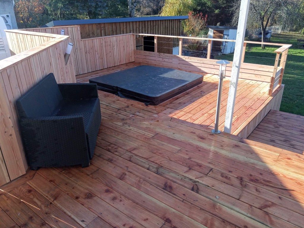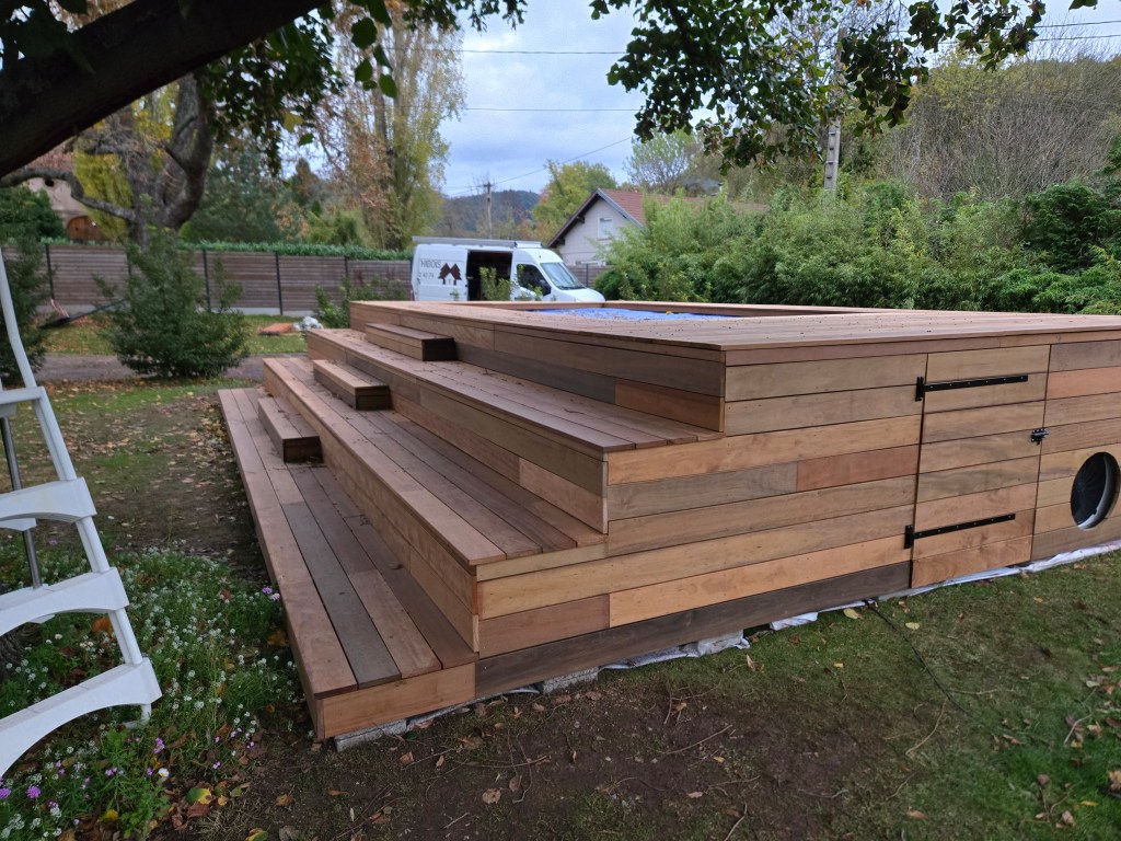 Platelage autoclave brun Entourage de spa en douglasTerrasse exotiqueTerrasse bois autoclaveEscalier bois-marche métalTerrasse avec lames douglas bombéesGarde corps bois autoclaveGarde corps bois + câbles métalliques Coin douche avec bardage douglasTerrasse entourage de spaTerrasse sur pilotisTerrasse douglas autour d’un spaTerrasse autour d’un bain nordiqueTerrasse sur toit plat